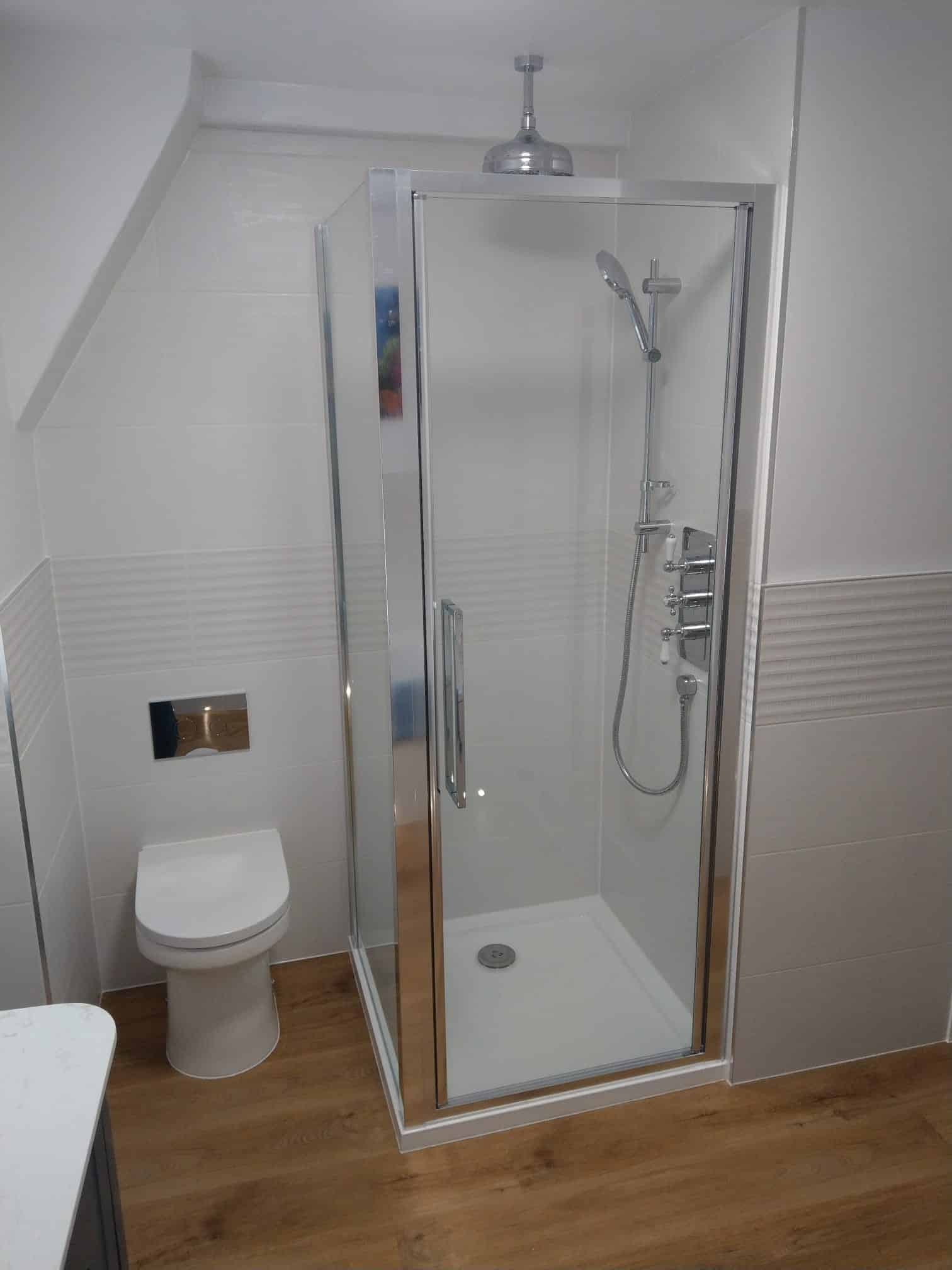 This particular bathroom was a big project. The bathroom door was situated on the far left, with the airing cupboard door situated to the right of this. Our clients asked us to move the airing cupboard into the left corner and situate the bathroom door more centrally.